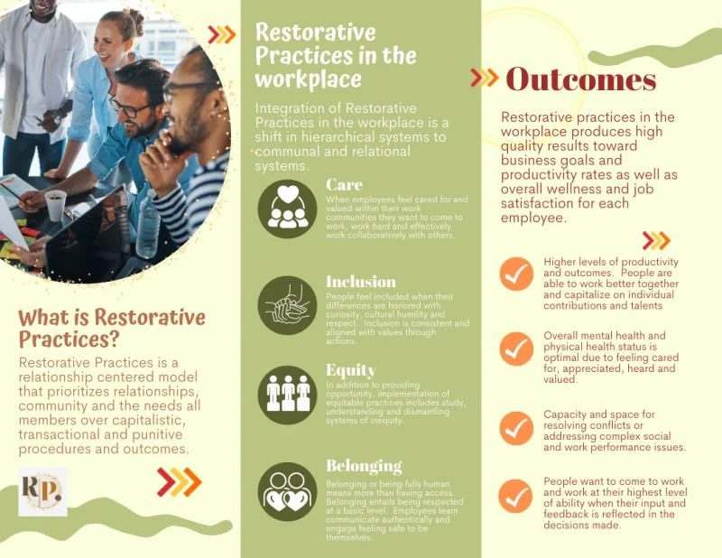 Research shows that workplaces adopting restorative practices experience higher employee engagement, reduced turnover, and improved morale. These practices encourage a positive work environment where individuals feel valued and empowered to contribute to shared goals.